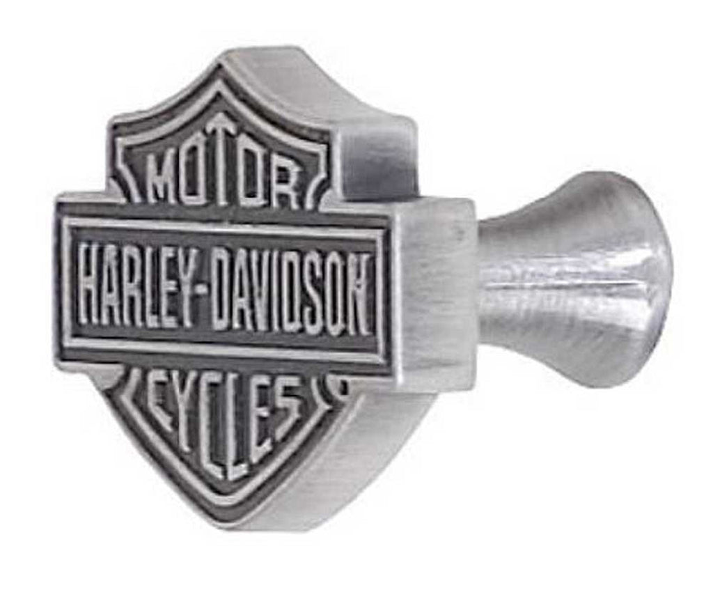 The Harley-Davidson® Bar & Shield Hardware Knob, is probably different from the knobs you’ve known in the past. This one is practical, made tough, handsome, has personality, serves a purpose, and has a story to tell. It’s all about Harley® History. The logo says it all, and yes it's true that your motorcycle isn't the only thing you can accessorize! Tap into the spirit of the open road and give your kitchen, bar, and/or game-room cabinets and drawers a facelift with new Harley-Davidson® hardware, featuring the full Harley-Davidson® Bar & Shield® logo. The knob is hand polished with an antique pewter finish and includes mounting hardware. Be sure to buy enough to outfit your entire cabinet.