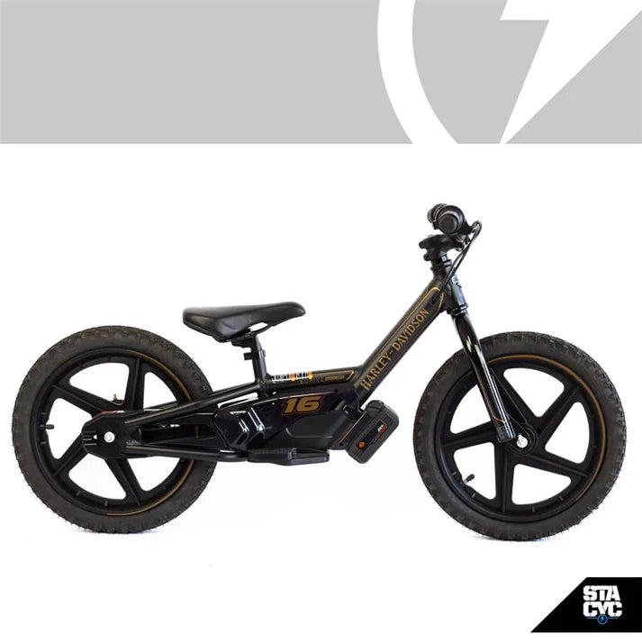 In Store Pickup Only The STACYC 16eDRIVE is the perfect choice for little rippers with some experience on a balance bike and are a little taller and/or more familiar with riding STACYC Stability Cycles and need a larger platform. Your child should have an inseam of 18” or more to adequately touch the ground with a slight bend in the knees for optimum sizing. Your child can learn to push, balance, and coast in the non-powered mode. Graduate them to the powered mode (the holy grail of fun) as they show proficient use and understanding of the brake and the ability to coast and brake while standing. Start them with a speed similar to what they can push the non-powered version at, and they learn the use of the twist throttle, and a long coast turn into a constant use of throttle and giggles. As they continue to develop skills, the medium speed of the STACYC 16eDRIVE allows for an exceptional amount of fun outdoors, getting thousands of hours of hand-eye coordination, balance, and outdoor exercise. Perfect for 5-7yr old rippers under 34kg, with 45-60cm inseam PN: ST100052