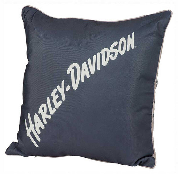 Harley-Davidson® Celebration Harley Outdoor Pillow - Blue, HDX-99228. Polyester outdoor pillow features Celebration Harley graphic on one side and Harley-Davidson® on the other. Water and fade resistant. Dimensions: 16" x 16".