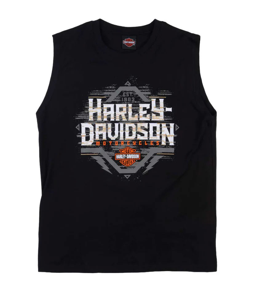 Perth Harley-Davidson dealer muscle up dealer Tee with the Perth dealer name printed on the back. Made with 100% Cotten with a custom print on the front and a custom dealer print on the back, made to a comfy fit.