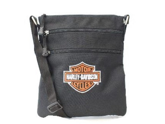 Description Basic black just got better. Contrasting silver zippers and the white Harley-Davidson® script elevate the classic H-D® look of the Black Ripstop Crossbody Bag. Made from water-resistant nylon, the sling bag features an adjustable strap that lets you fit the crossbody silhouette to your comfort. This pint-size portable gives you plenty of room for the must-haves you need for active lifestyle, with a top-zip opening and two front horizontal-zip pockets. Details