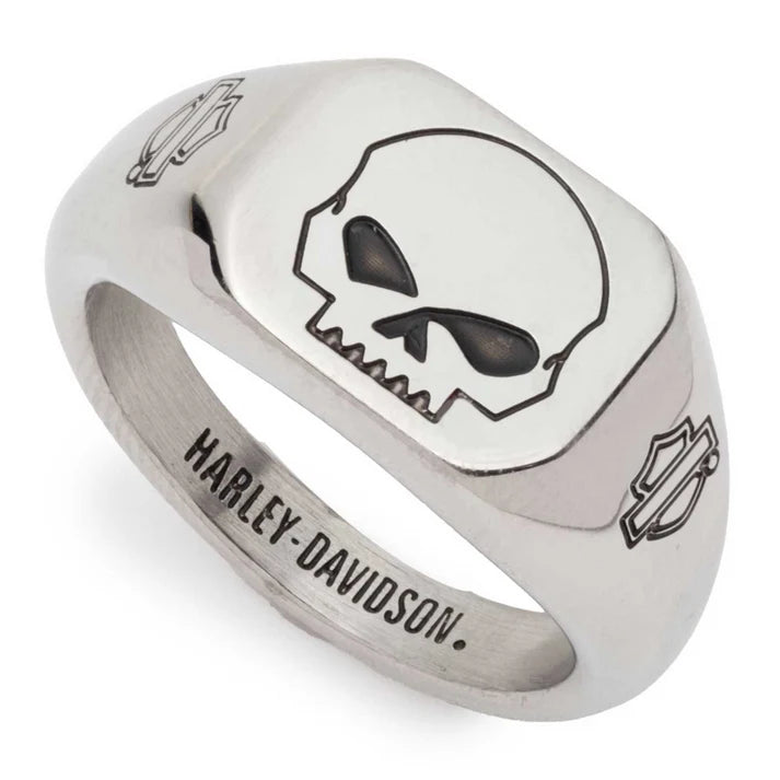 Harley-Davidson® Men's Willie G Skull Beveled Edge Ring - Stainless Steel