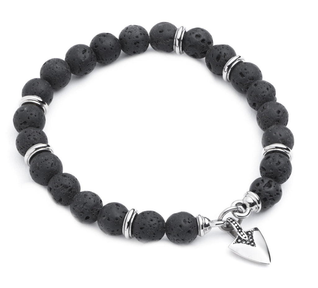 Harley-Davidson® Unisex 8" Lava Bead Rope Stretch Bracelet with Accent Stones. This stylish bracelet is made from stainless steel base, with lava beads, and hematite glass accent stones. This is a stretch bracelet. Size: 8".
