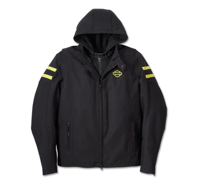 The Limited Edition Ovation 3-in-1 Textile Riding Jacket delivers a triple-play of style, warmth, and functionality. The outer jacket is made from a durable cut of heavyweight nylon, while the removable hoodie is a cozy cotton and polyester French terry. The jacket is finished with sleeve striping for a hit of added style, reflective piping for added visibility, and our branding for added authenticity. The hoodie is minimally branded with our open Bar & Shield on the front, so you can level up your look with other H-D layers underneath. Don’t forget to add superior breathability and impact protection that feels weightless with our D3O® Ghost™ Armor options. See all of the specs below, then snag yours before these seasonal men’s 3-in-1 motorcycle jackets sell out…