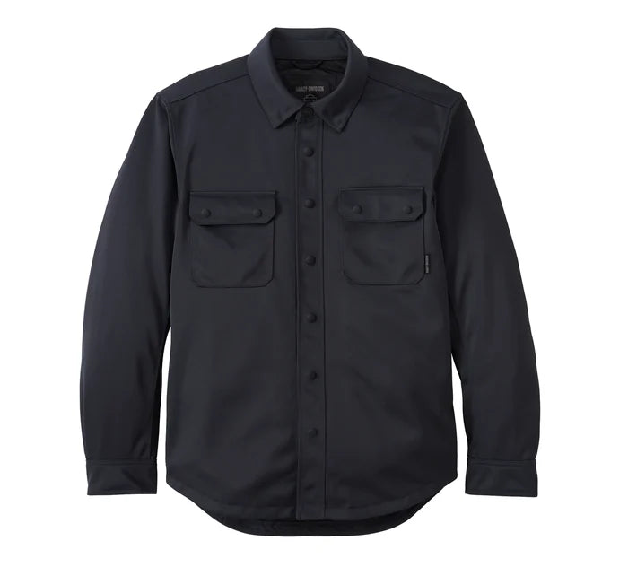 Legendary artistry meets breathable, lightweight protection in our Willie G® Skull Graphic Mesh Operative Riding Shirt Jacket. Its allover knit mesh construction welcomes more airflow than our previous Operative twill styles. It has reflective material to enhance visibility, a hidden snap-down collar that won’t flap around during rides, and is equipped with superior impact protection from our D3O® Ghost™ armor at the shoulders and elbows. This men’s motorcycle shirt jacket is also tested and certified to meet abrasion, tear, and seam strength requirements (more details below). It’s finished with Willie G. Davidson’s most iconic logo filling the back. Know the history—in addition to his artwork used on H-D® apparel, Willie G. personally designed several motorcycles, including the 1971 FX Super Glide® and the 1977 FXS Low Rider®.