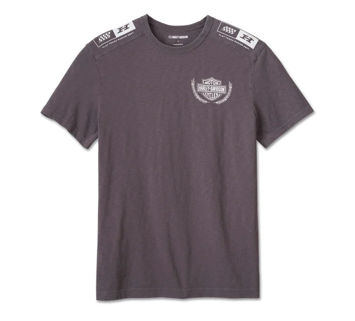 Throwback style shares a lane with relaxed-fit comfort on our Horsepower Short Sleeve Tee. Made from 100% cotton slub jersey that’s vintage washed for a well-worn look and feel. This men’s t-shirt gets its elevated look from shoulder seaming and winning graphics that salute our 1970s Factory Racing Team and XR-750 motorcycle model.