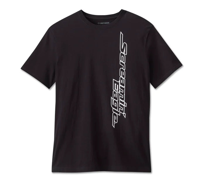 Screamin' Eagle® Short Sleeve Tee. Crafted from a breathable cut of midweight cotton jersey with a rib-knit neckline to keep its shape. Finished with vertical branding racing up the front and proudly filling the back.