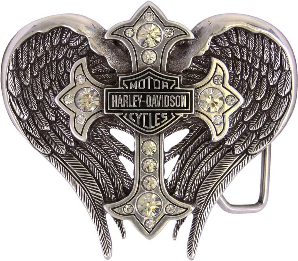 Harley-Davidson® Women's Back Roads Cross Winged Belt Buckle Chrome