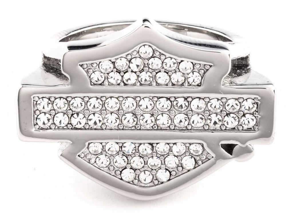 Harley-Davidson Women's Paved Crystal Bar & Shield Logo Ring, Sterling Silver