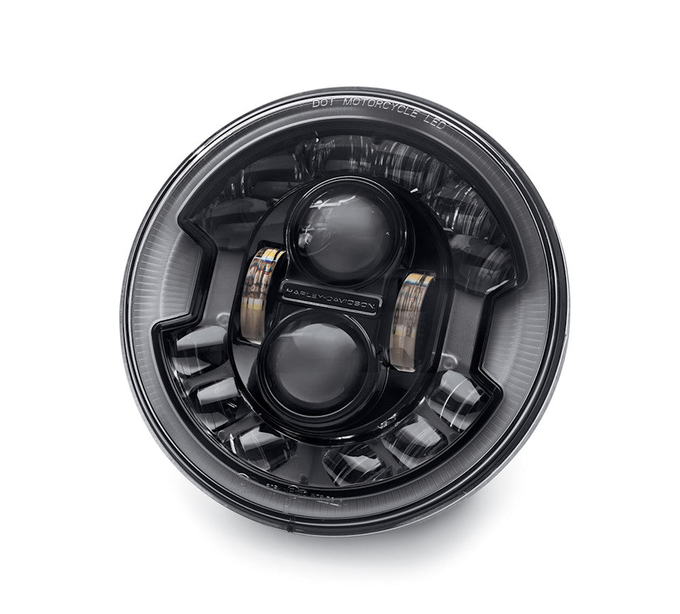 The Daymaker Adaptive LED Headlamp combines the best in headlight performance with the ultimate in modern styling. The projector-style LED offers best-in-class punch and spread with a pure white light that feels like riding during the day. Best yet, this headlamp features 12 LED spot lights that activate based on the lean of the bike and deliver curb-to-curb lighting that illuminates areas of the road unlit by traditional LED headlamps. The Daymaker Adaptive Headlamp provides functional perfection and exquisite styling all in one.
