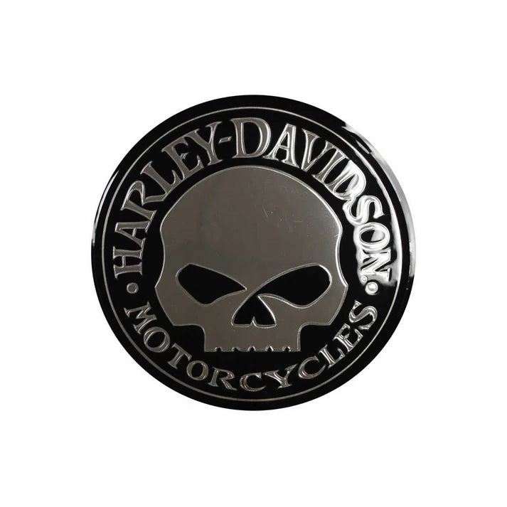 Harley-Davidson® Skull Decal. Features a Harley silver skull. Weather resistant vinyl adheres to most smooth surfaces including: glass, plastic, metal and many more. Easy to apply and looks great! Size: 5.5 inches.