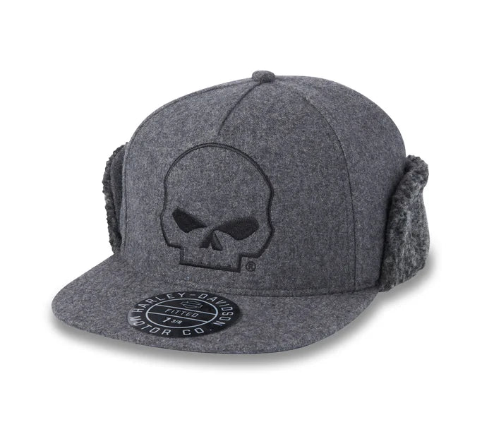 Stay warm when temps dip in our Limited Edition Willie G™ Skull Flap Hat. Built from a mix of wool/acrylic/polyester/nylon that’s fitted to comfortably conform to your head size. Its Sherpa-lined earflaps flip down, making this men’s hat an ideal outerwear pick. A stylish hit of embroidered graphics give it a utility-inspired look that’s 100% Harley-Davidson. Know the history—the featured Skull on front was originally created by Willie G. Davidson for the 2000 Daytona Bike Week, and has been a rider favorite ever since. Snag this seasonal must-have now before supplies run out.